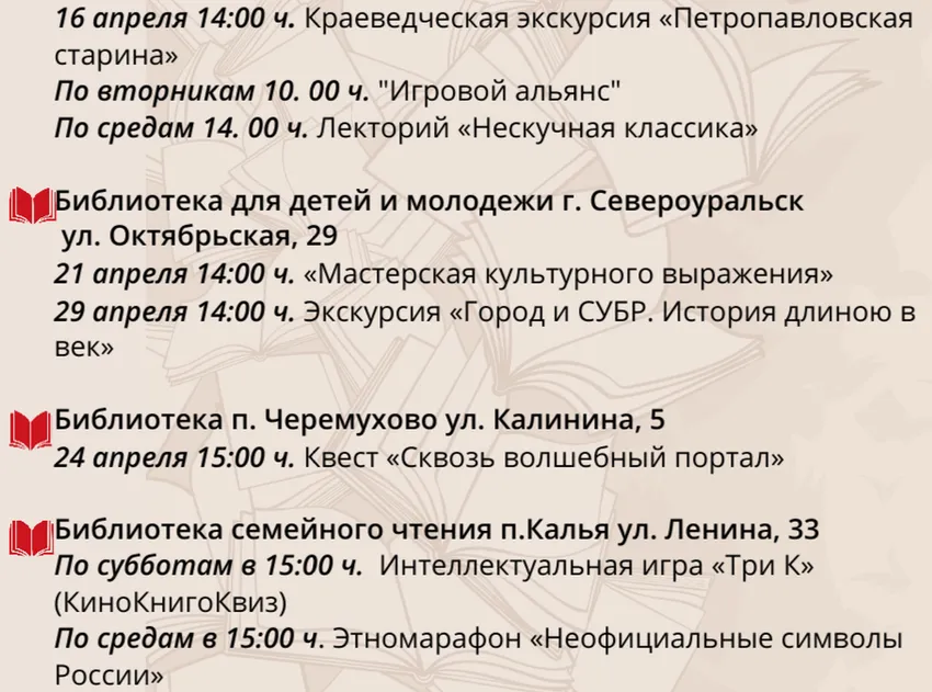 Дорогие друзья! Предлагаем Вам афишу мероприятий на февраль МАУК «Централизованная библиотечная система Североуральского муниципального округа», которые возможн