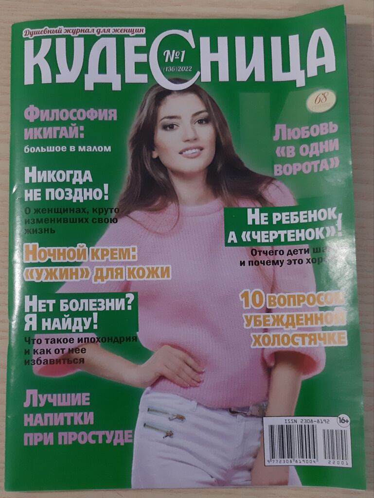 В январском номере ежемесячного журнала «Кудесница» раскрываются секреты красоты, моды и стиля. На страницах журнала размещены постоянные рубрики: «Дела семейные», «Мода и стиль», «Истории из жизни», «Ваше здоровье», «Наши детки», «В гармонии с собой». В рубрике «Персона» читателя ждет встреча со знаменитой итальянской актрисой Моникой Беллучи. В рубрике «Двое и судьба» рассказывается о трагической судьбе жены русского композитора Сергея Прокофьева – испанке Каролине-Кодине Любера. Также «Кудесница» предлагает кулинарные рецепты и рецепты народной медицины, полезные советы по уходу по дому.