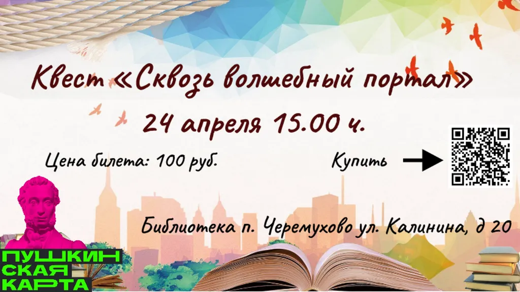 24 апреля в 15:00 ч. Квест - игра "СКВОЗЬ ВОЛШЕБНЫЙ ПОРТАЛ" в Библиотеке п. Черемухово.
