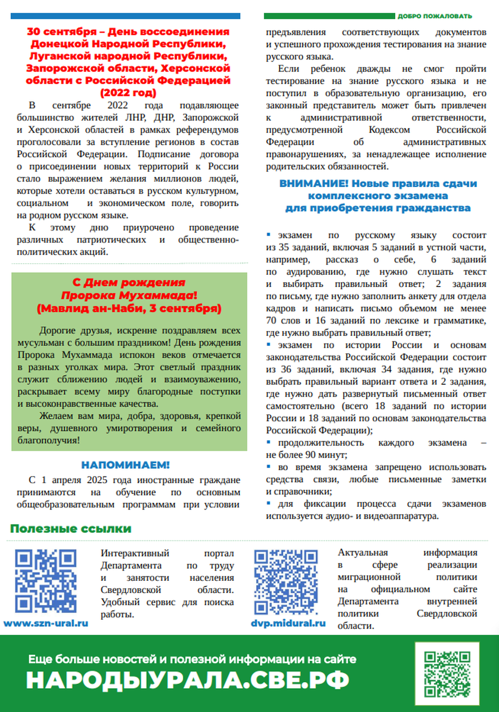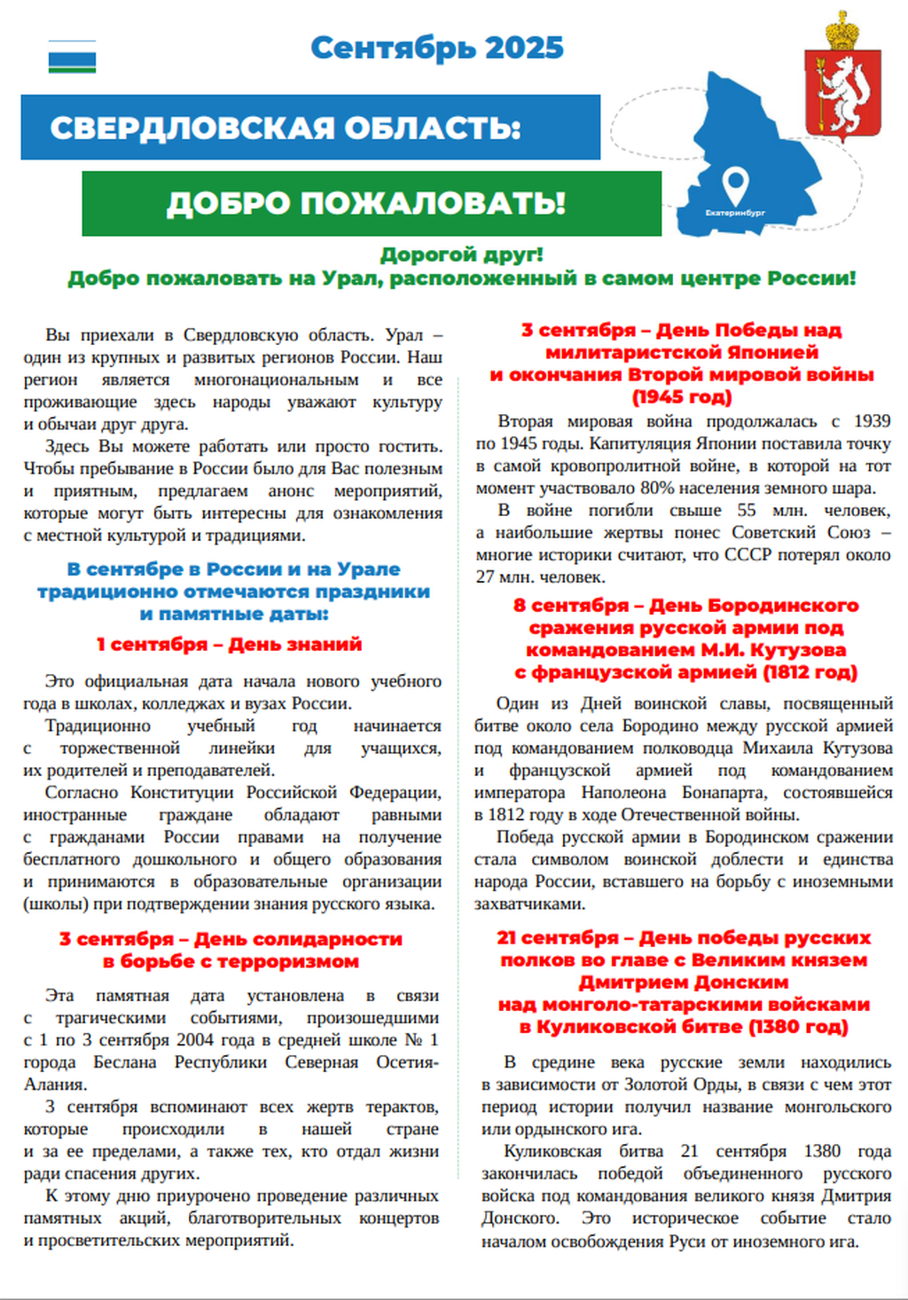 ДОБРО ПОЖАЛОВАТЬ НА УРАЛ! ИНФОРМАЦИОННЫЙ БЮЛЛЕТЕНЬ НА СЕНТЯБРЬ 2025 ГОДА