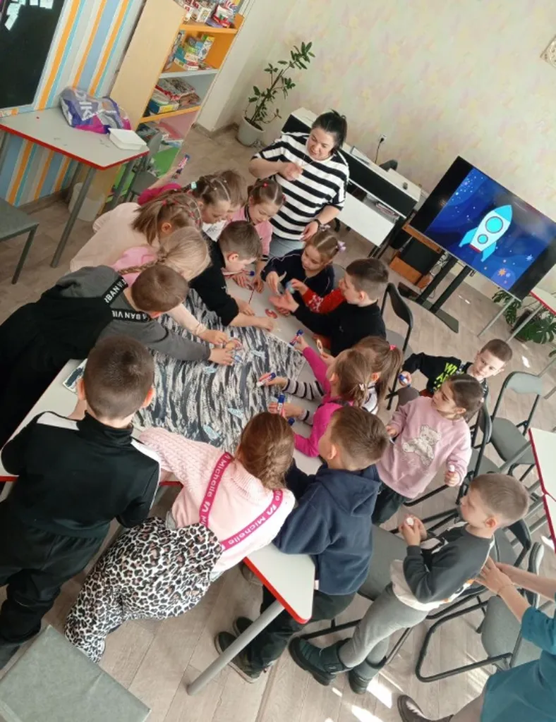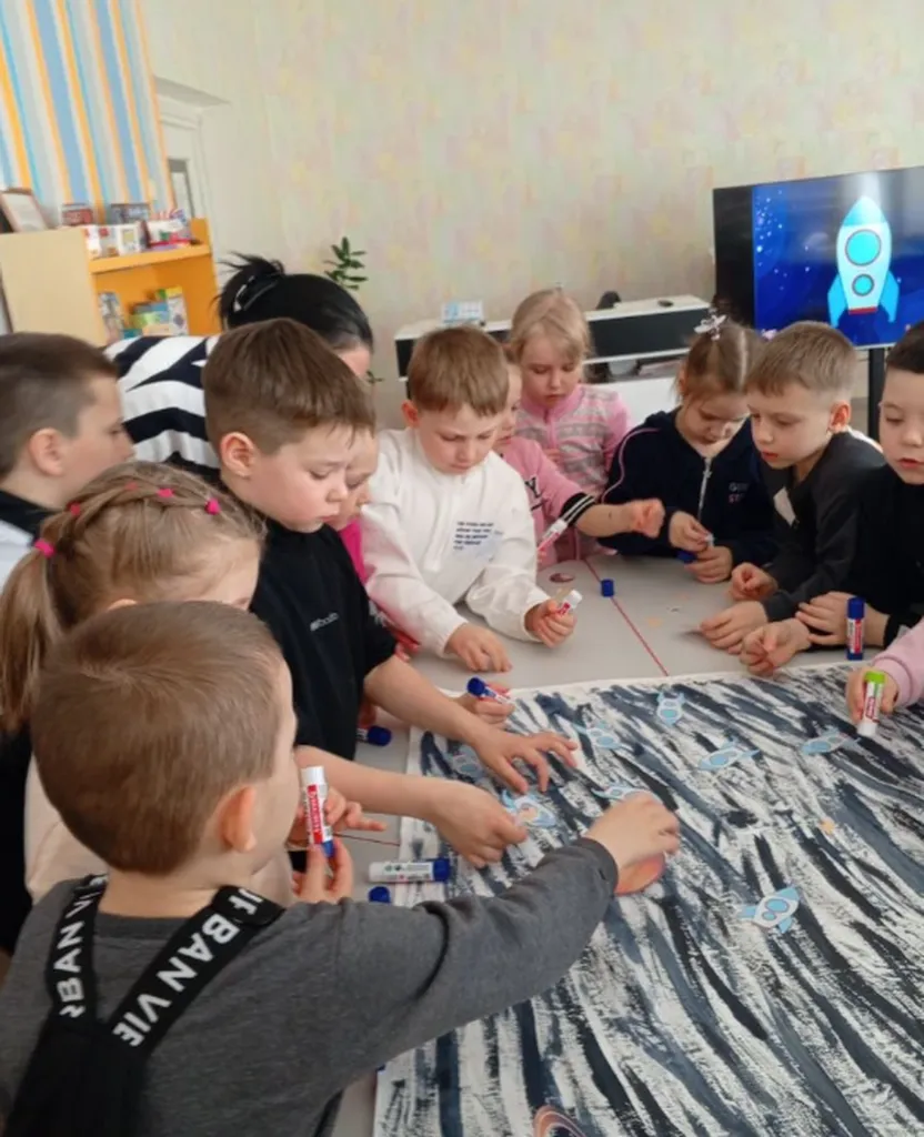 Очень активно прошел мастер-класс «Дорога в космические просторы». Здесь ребята познакомились с миром планет и звезд, причем разговор был двухсторонний, с активным участием читателей. И самое интересное — это занятие творчеством, сборка космических ракет из бумаги и оформление коллективной работы «Наша Вселенная».