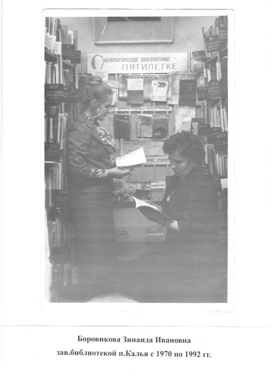 А история детской библиотеки горняцкого поселка Калья, судя по первой инвентарной книге, началась 27 января 1965 года. До 1970 года заведовала библиотекой О.Чкало. В 1970 году книжный фонд детской библиотеки приняла Р.С.Зайцева. Библиотека занимала одну комнату в здании поселковой администрации, обслуживала 300 читателей, книжный фонд составлял 8748 экземпляров. В детской библиотеке читатели не только знакомились с книгами, у них развивался интерес к истории родного поселка, к профессиям людей, населяющих его.